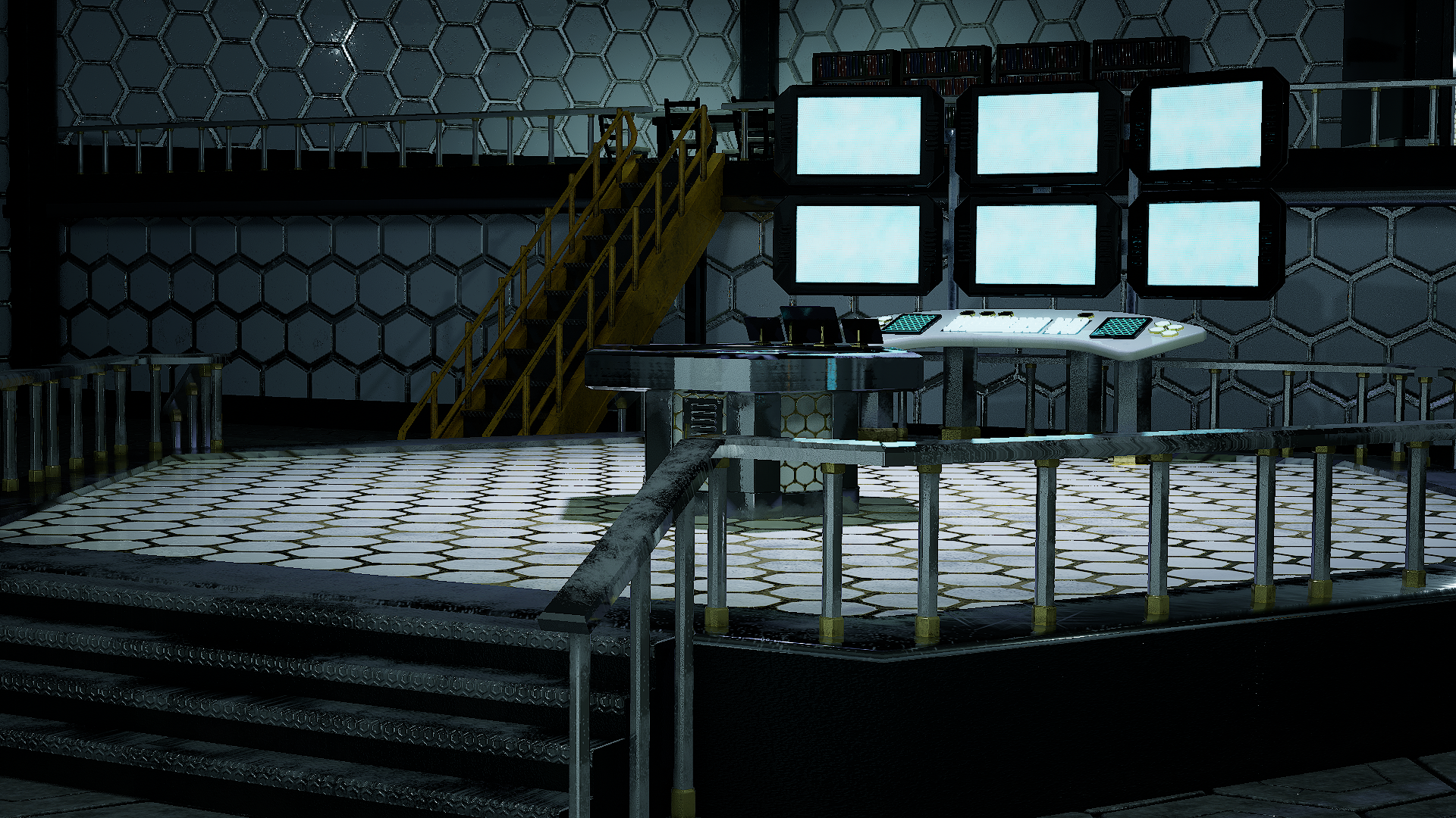 This is an update of my Hive environment. Previously the lair of Cockroach Man, Mayfly and their “guy in the chair” Zee, this environment needed to be retooled for use in my in-progress “Power House” series. Expanding from a team of two heroes and a support member to a team of five young heroes, two mentor heroes and a support member meant the environment needed to be scaled up for a larger cast. Additionally, doors that were previously facades were replaced with openings to allow characters to enter the elevator, hanger, and “Holosseum” training area. Lastly, the Cockroach Man logos were removed from certain textures to reflect that this is no longer a lair built for a single hero, but rather for a larger team.